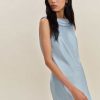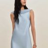 Get some compliments. Shop the Jonelle Silk Dress from Reformation, a sleeveless mini length dress with a boat neckline and open back with a cowl detail.