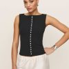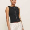 Up top. Shop the Julie Knit Top from Reformation, a sleeveless top with a high neckline and button front.