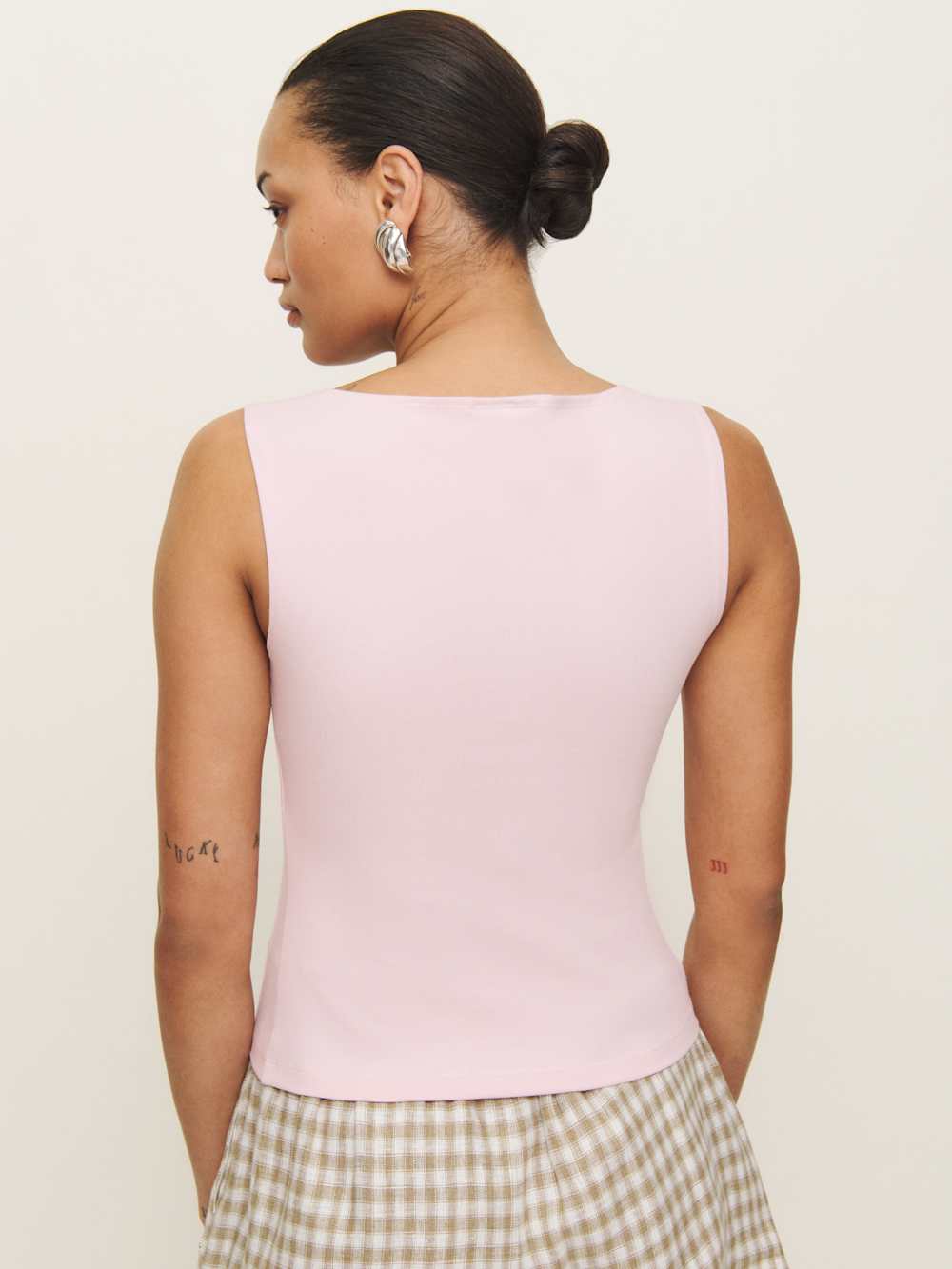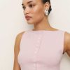 Up top. Shop the Julie Knit Top from Reformation, a sleeveless top with a high neckline and button front.