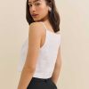 Up top. Shop the Kerri Linen Top from Reformation, a cropped sleeveless top with an apron style neckline.