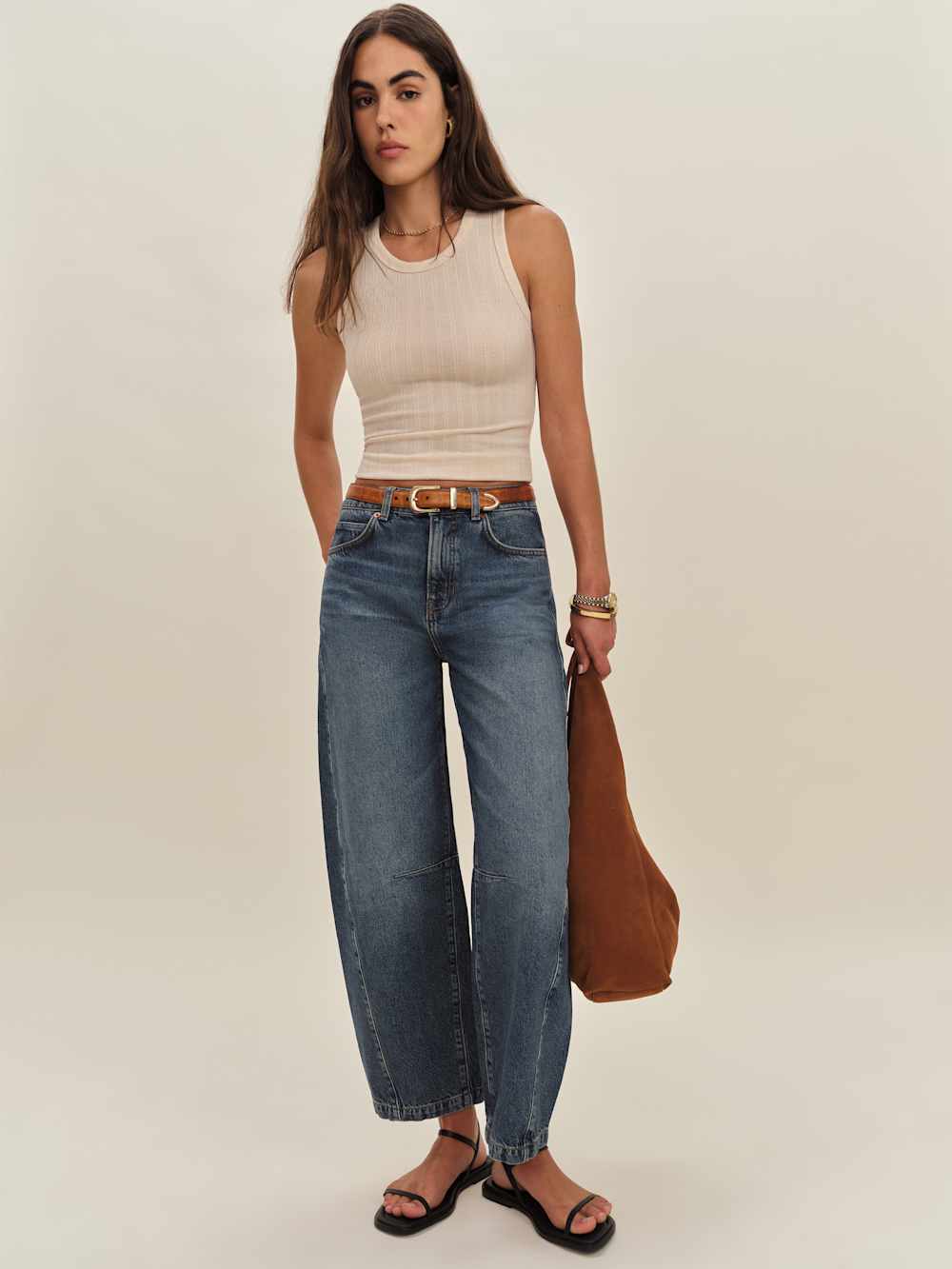 Throw it on when you’re running kind of late. Shop the Kester Knit Top from Reformation, a sleeveless top with a high crew neckline.