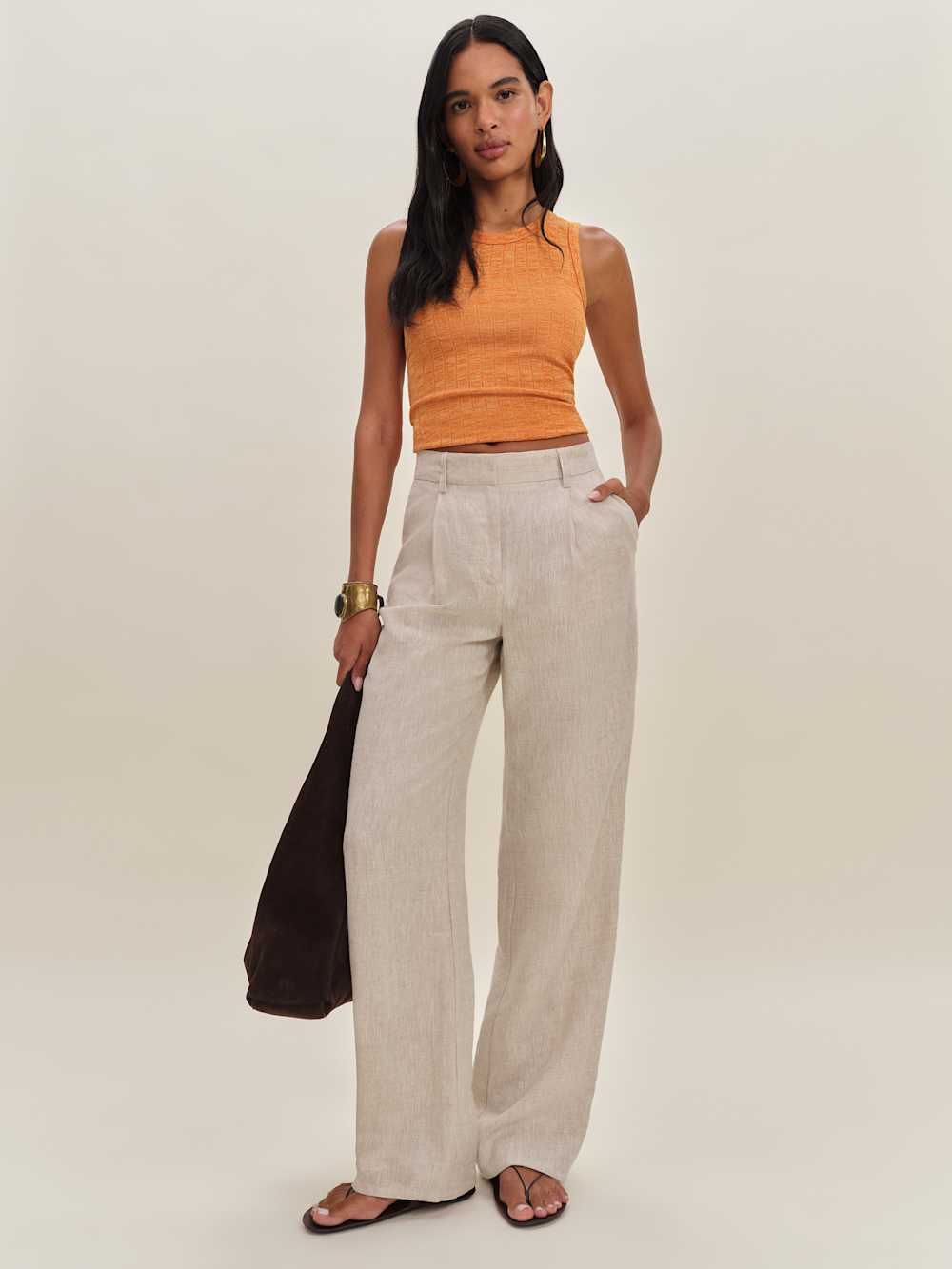 Throw it on when you’re running kind of late. Shop the Kester Knit Top from Reformation, a sleeveless top with a high crew neckline.