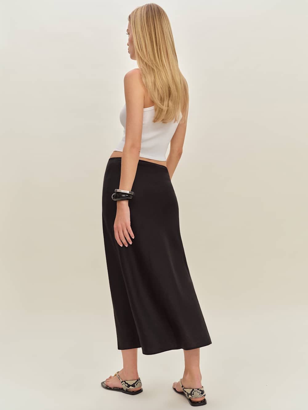 Let your skirt do the talking. Shop the Layla Linen Skirt from Reformation, a bias cut, midi skirt with an elasticated waist.