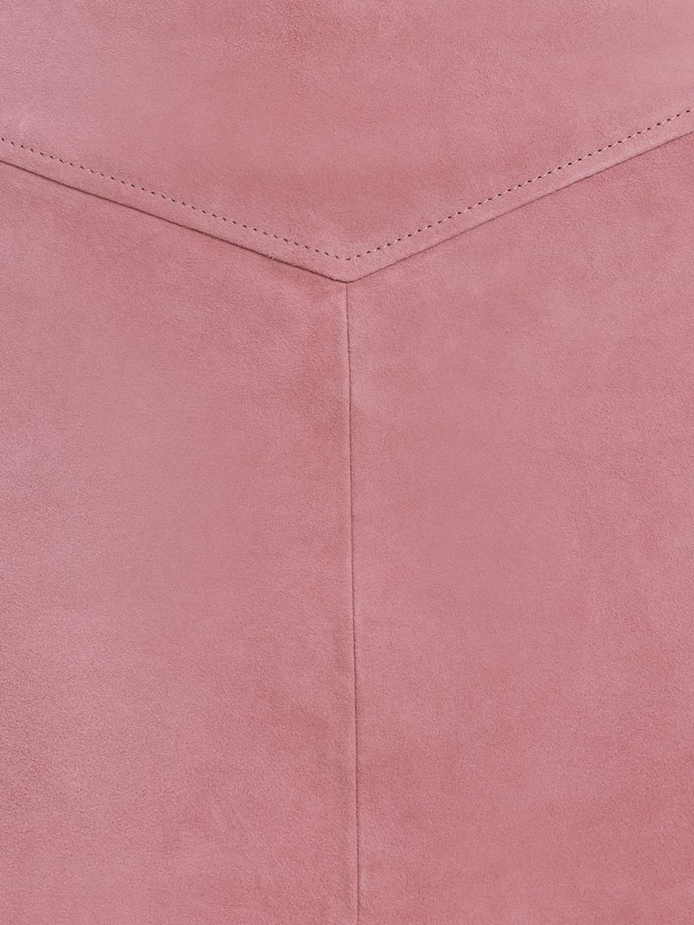 Lightweight and drapey soft suede. This a lamb suede sourced from a Leather Working Group Gold certified tannery. Spot clean.