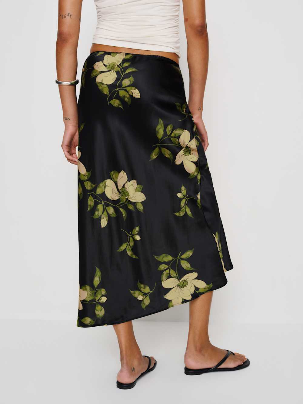 Let your skirt do the talking. Shop the Layla Silk Skirt from Reformation, a bias cut, midi skirt with an elasticated waist.