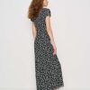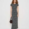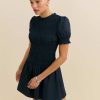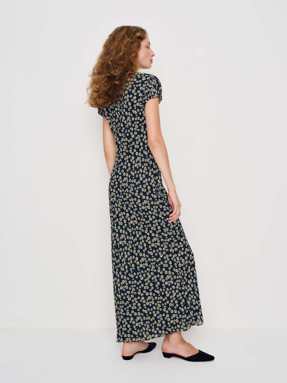How romantic. Shop the Leana Dress from Reformation, a midi dress with a high neckline, ruched cap sleeves, and lace detailing at the neck.