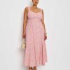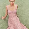 Wear the dress. Shop the Lela Dress from Reformation, a sleeveless midi dress with a sweetheart neckline and lace trim at the neckline.