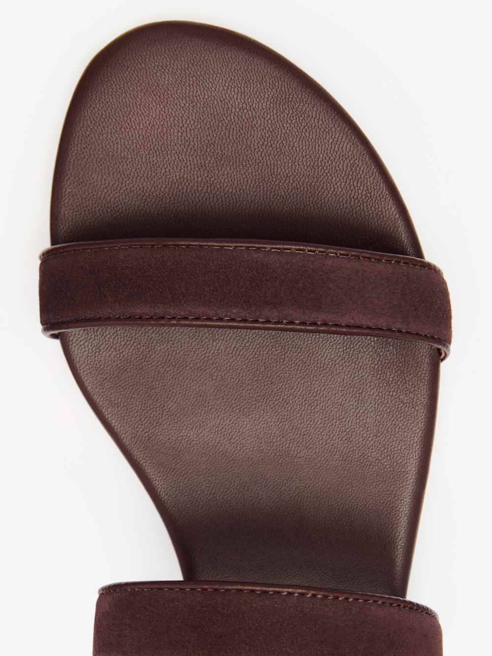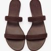 Wear me. Shop the Lenora Flat Sandal from Reformation, a slide on flat sandal with a round toe and double strap detailing.