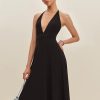 You flirt. Shop the Louie Knit Dress from Reformation, a sleeveless midi dress with a deep v-neckline and straps that cross in back.