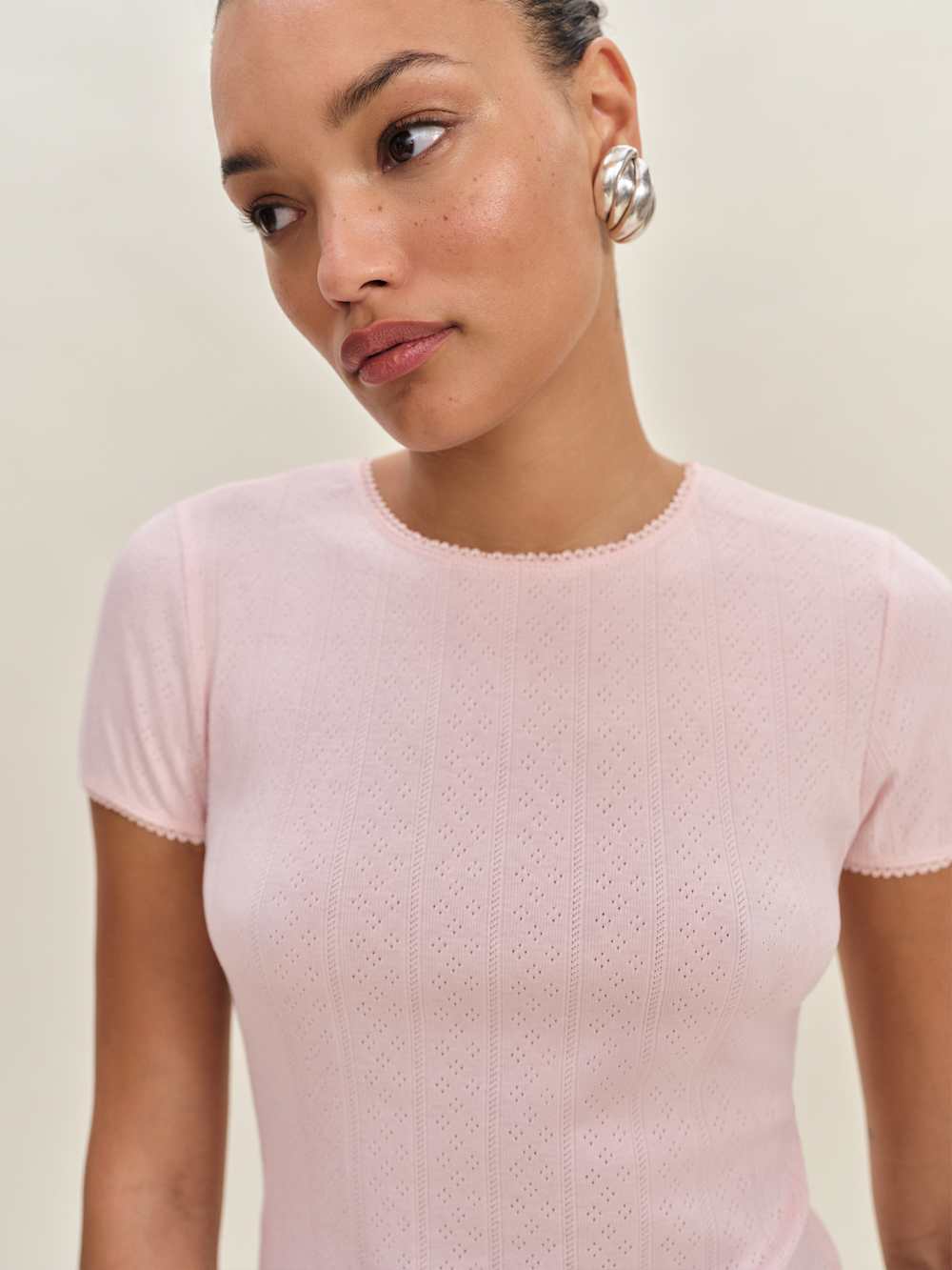 Throw on and go. Shop the Lucas Pointelle Top from Reformation, a short sleeve pointelle tee.