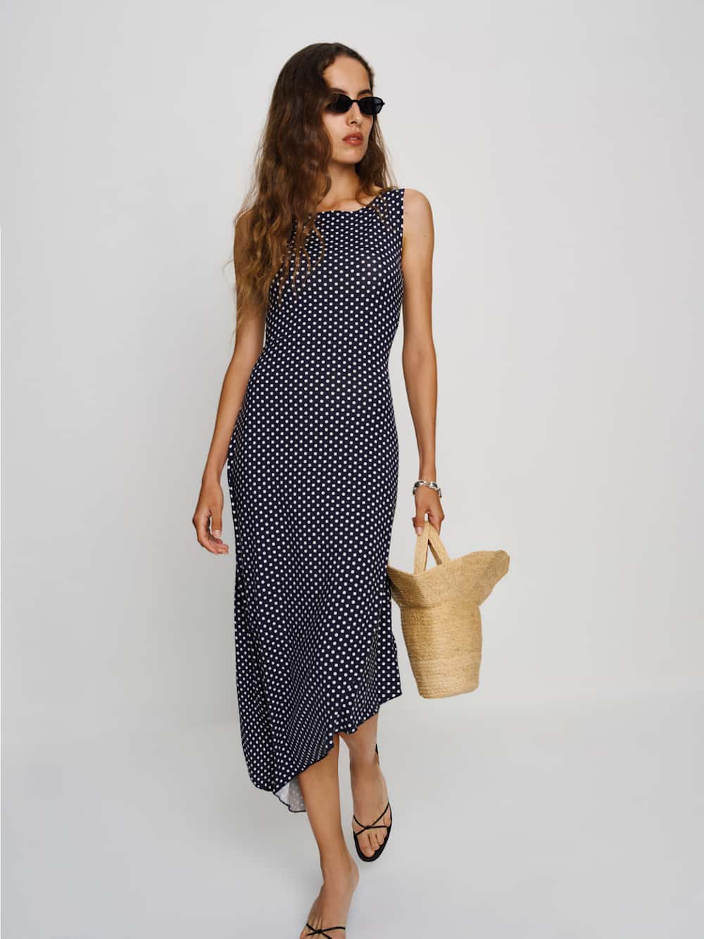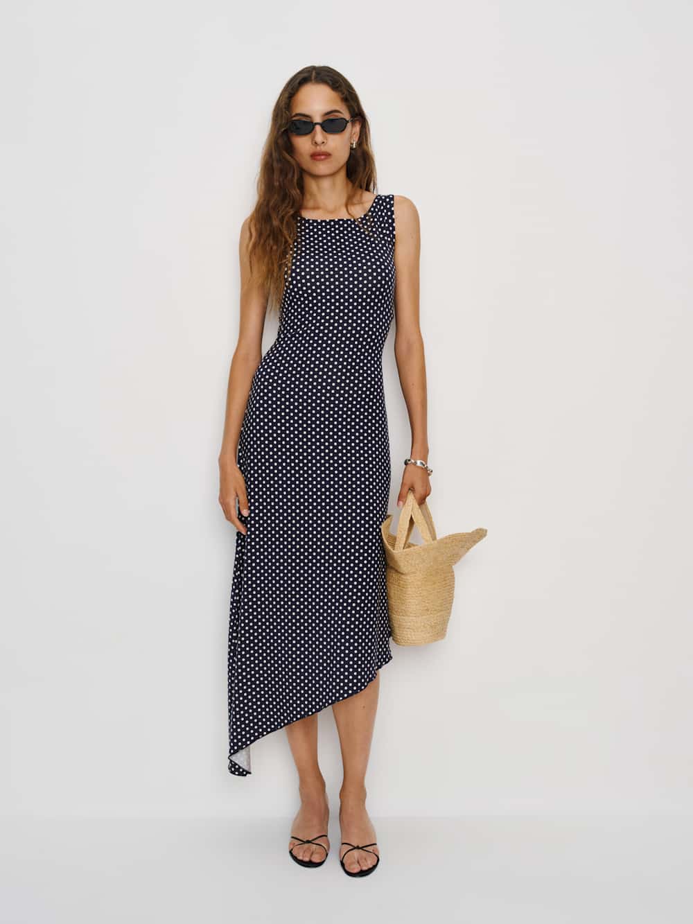 In case of weekends. Shop the Luke Knit dress from Reformation, a sleeveless midi dress with a boat neckline and a mermaid silhouette.