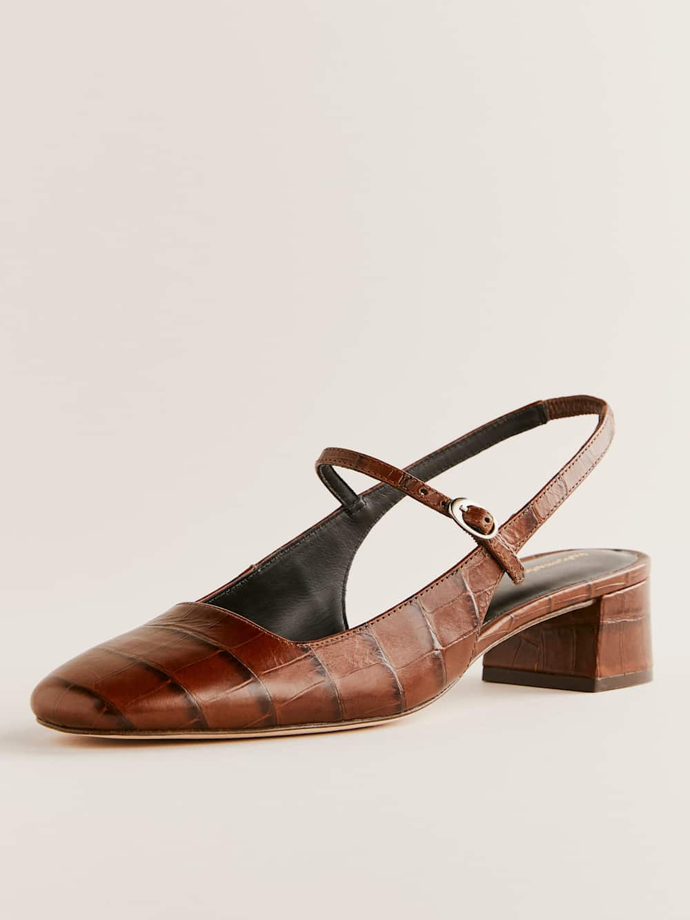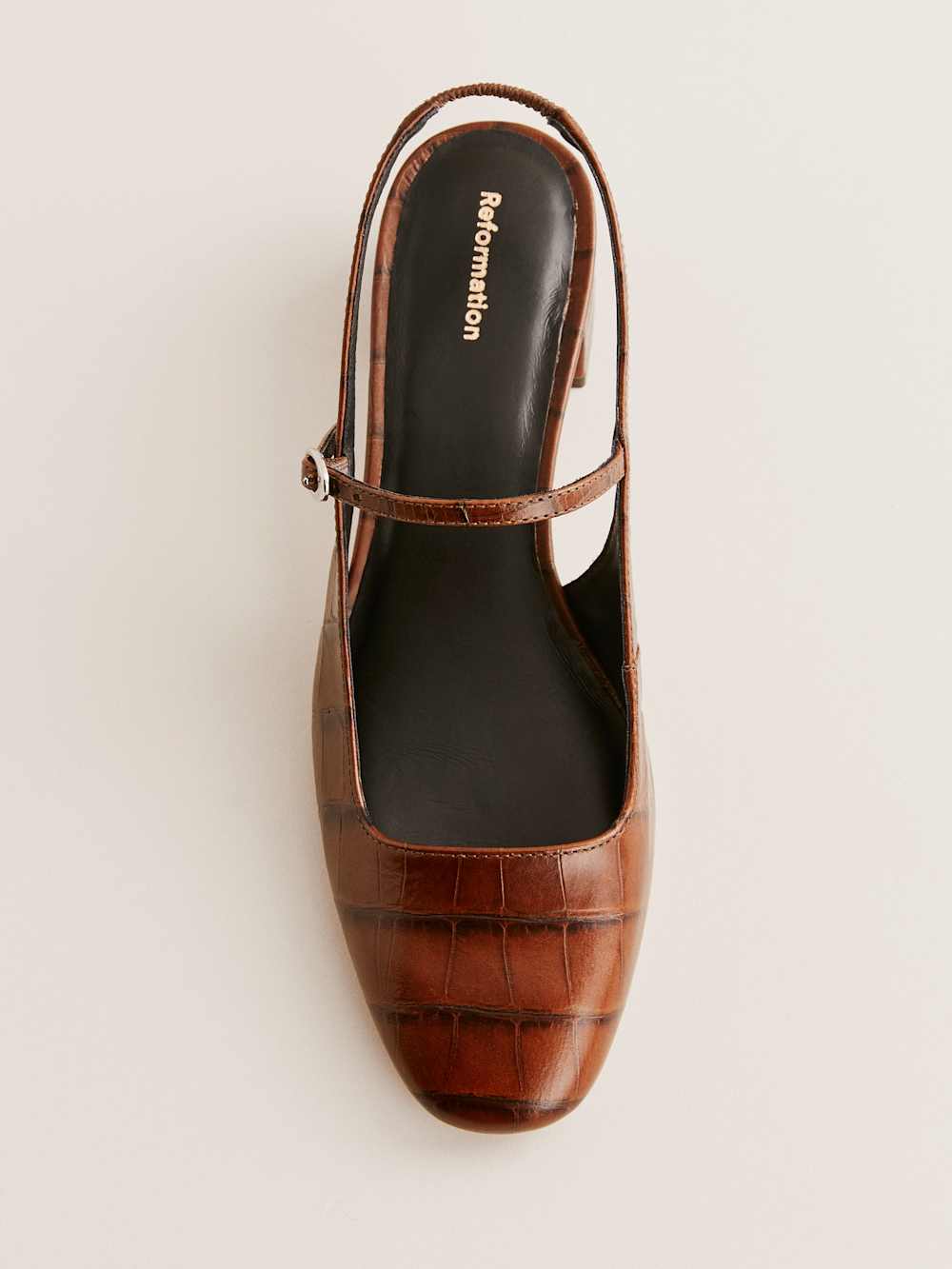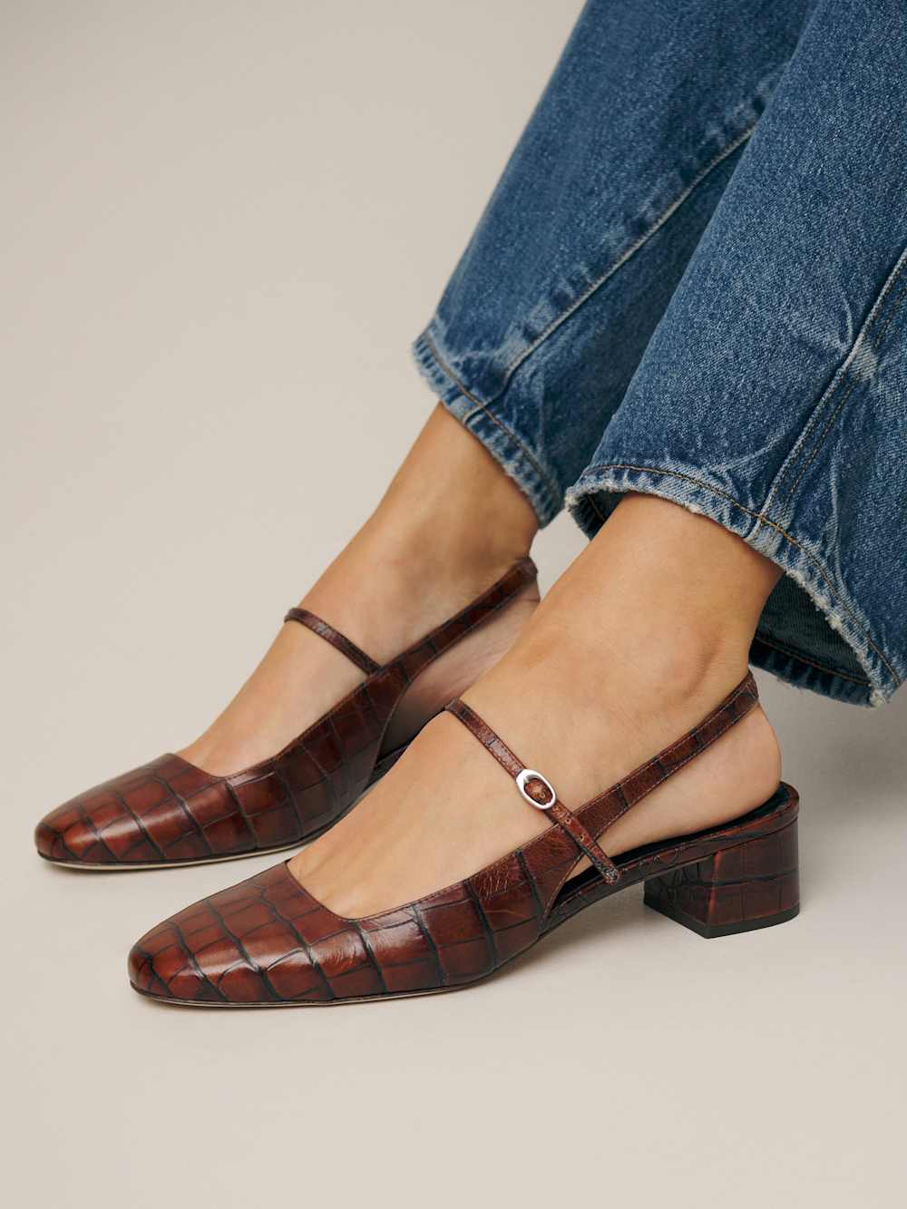 We want to touch your feet. Shop the Maddox Slingback Heel from Reformation, a slingback with a low block heel, round toe, and a thin strap.