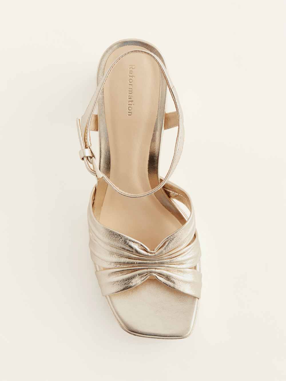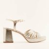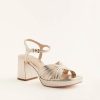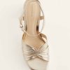 People might stare at your feet. The Maize is a platform sandal with a 100% silk satin charmeuse ruched upper and adjustable ankle straps.