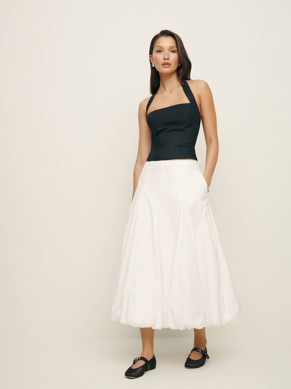 May cause compliments. Shop the Malika Linen Top from Reformation, a top with a halter neckline, smocked back, and adjustable tie at the neck.