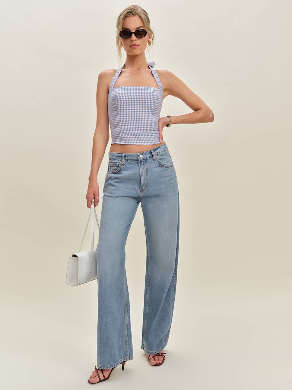 May cause compliments. Shop the Malika Linen Top from Reformation, a top with a halter neckline, smocked back, and adjustable tie at the neck.