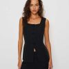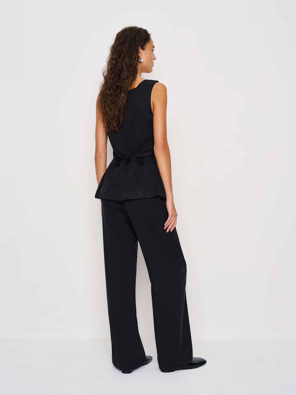Who, me. Shop the Maren Two Piece from Reformation, a sleeveless top with a functional button front and tie detail in the back with matching mid-rise pants.