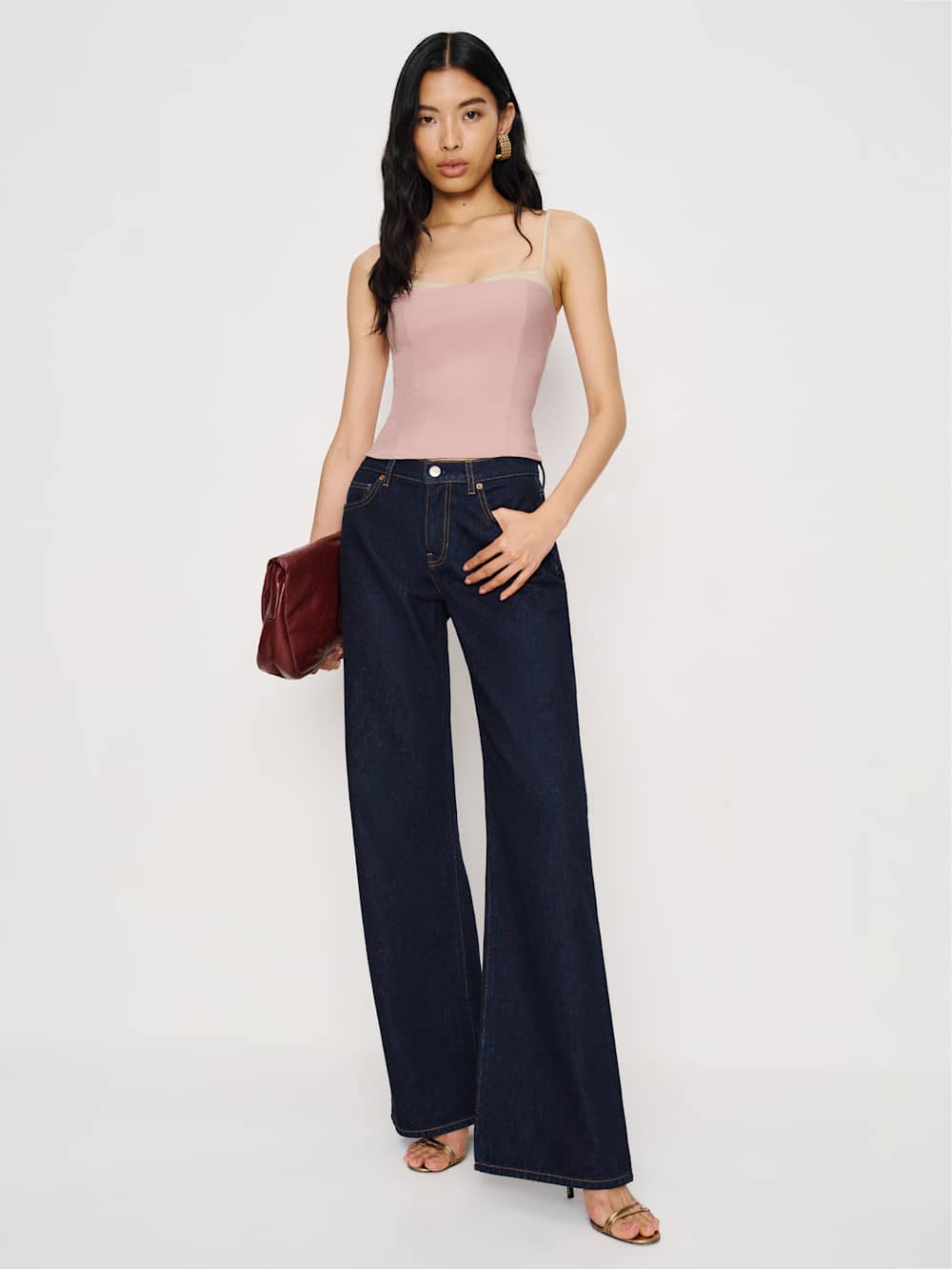 You make it look easy Shop the Melanie Top from Reformation, a sleeveless top with contrast stitching and a sweetheart neckline.