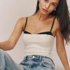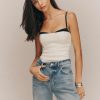 You make it look easy Shop the Melanie Top from Reformation, a sleeveless top with contrast stitching and a sweetheart neckline.