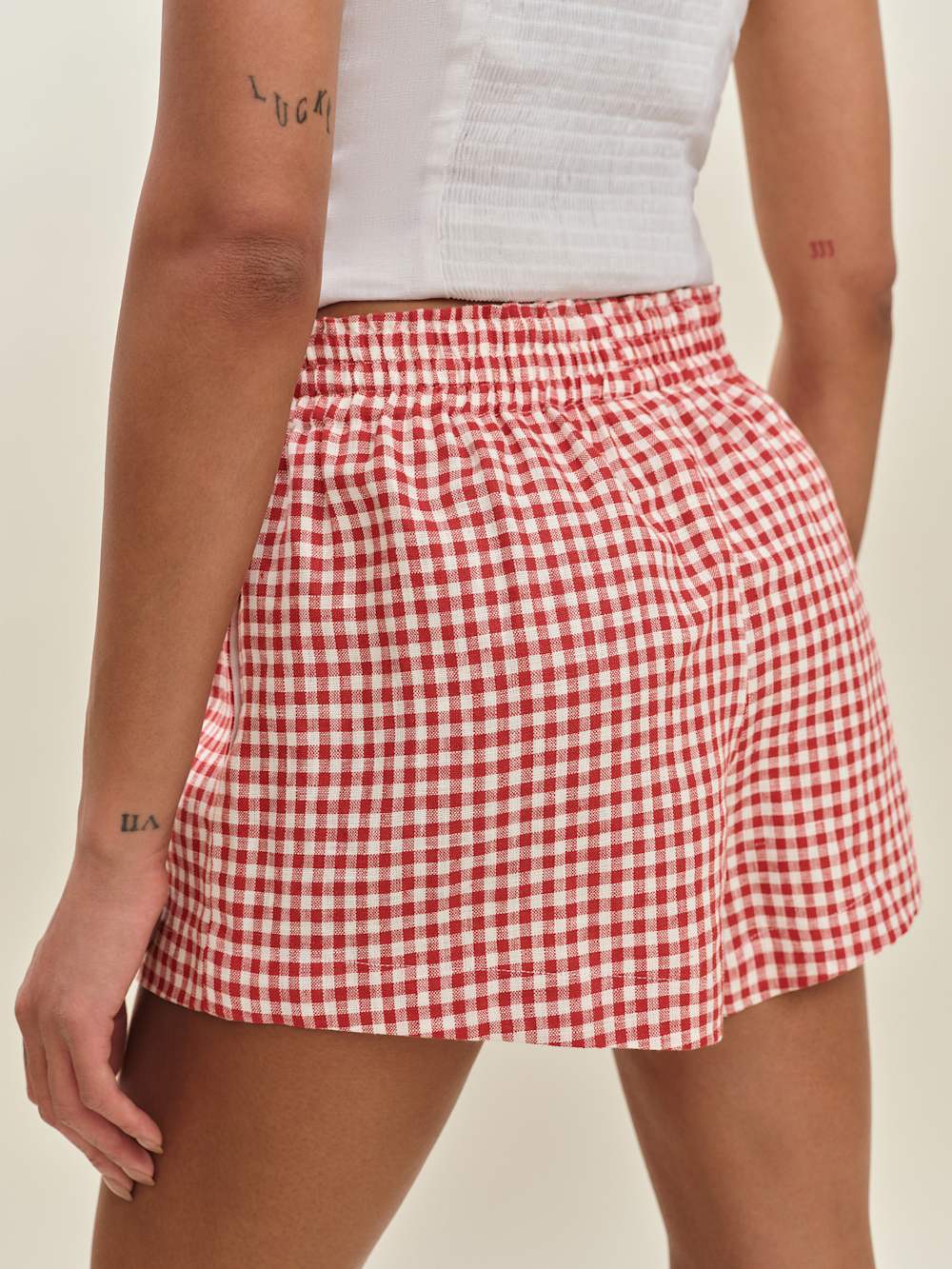 In case of getting dressed. Shop the Mila Linen Short from Reformation, an easy fitting short with a smocked waist and side pockets.