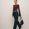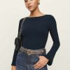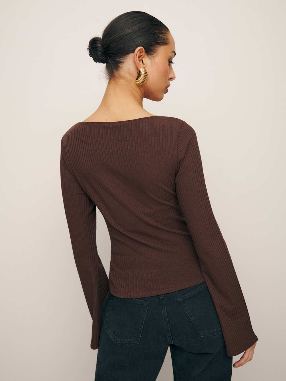 Pretty necessary. Shop the Miller Knit Top from Reformation, a long sleeve top with a boat neckline and bell sleeves.