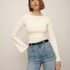 Pretty necessary. Shop the Miller Knit Top from Reformation, a long sleeve top with a boat neckline and bell sleeves.