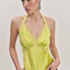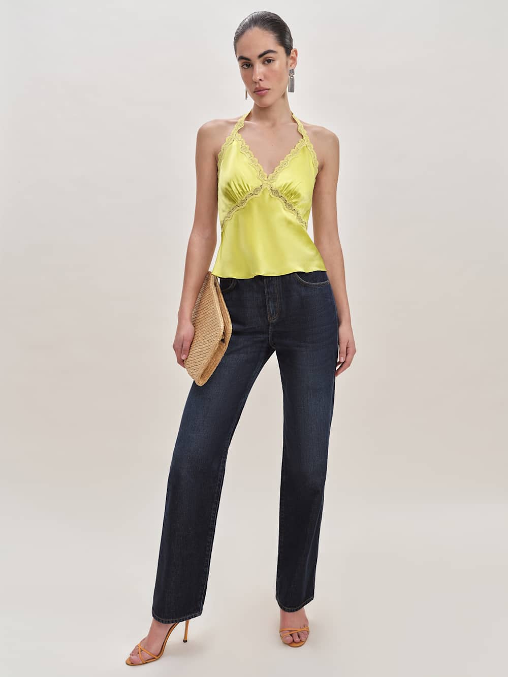 If you have to be fancy soon. Shop the Monica SIlk Top from Reformation, a full length top with a tie halter neck and an open back.