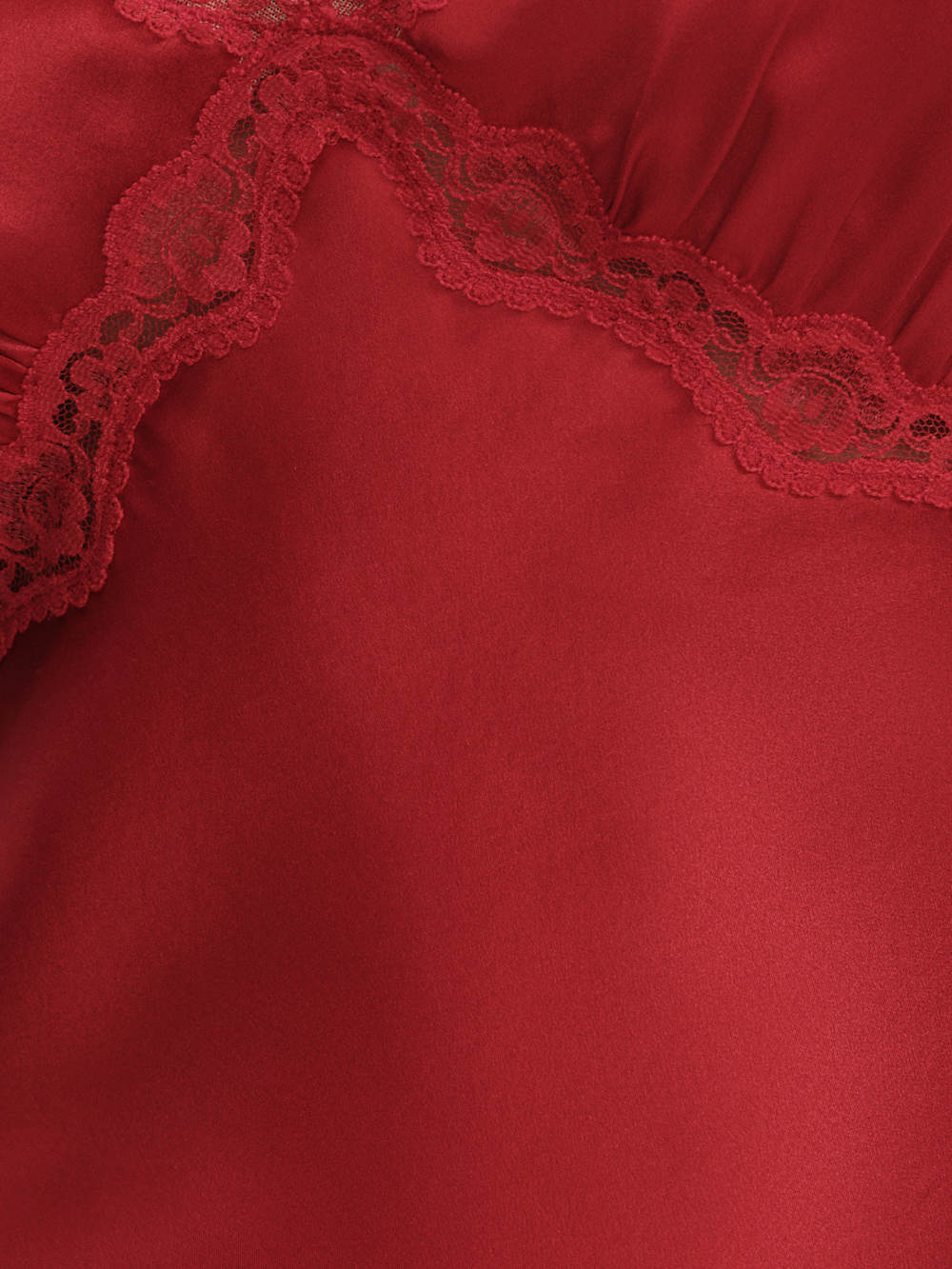 This is a lightweight silk charmeuse fabric – 100% silk. Dry clean only.