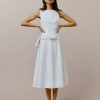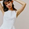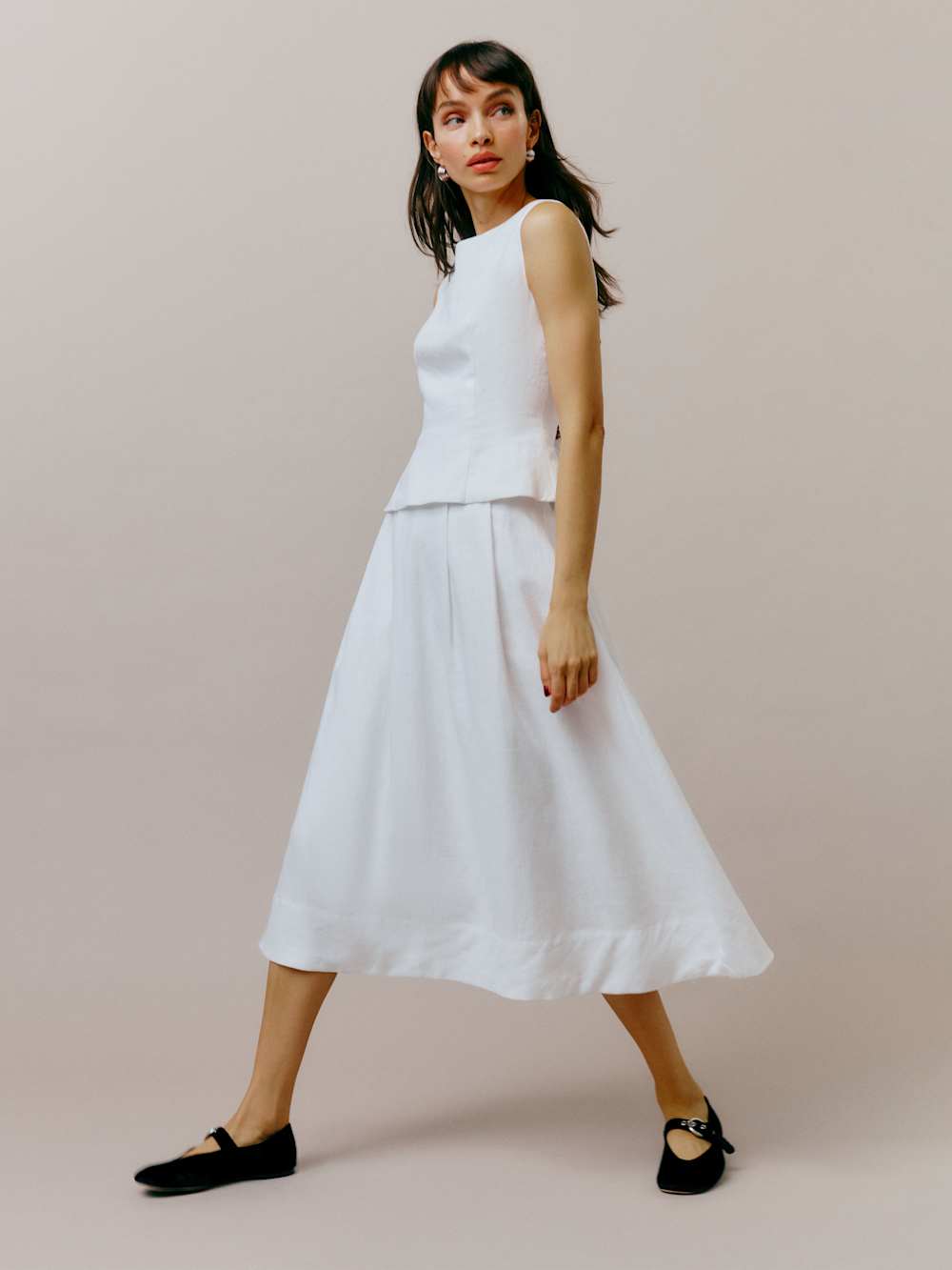 No nonsense. Shop the Moya Linen Two Piece from Reformation, a sleeveless top with a high neckline and matching midi skirt.