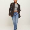 The model is wearing a size XS and is 5’9", 23.5" waist, 34" hips, 34" bust.