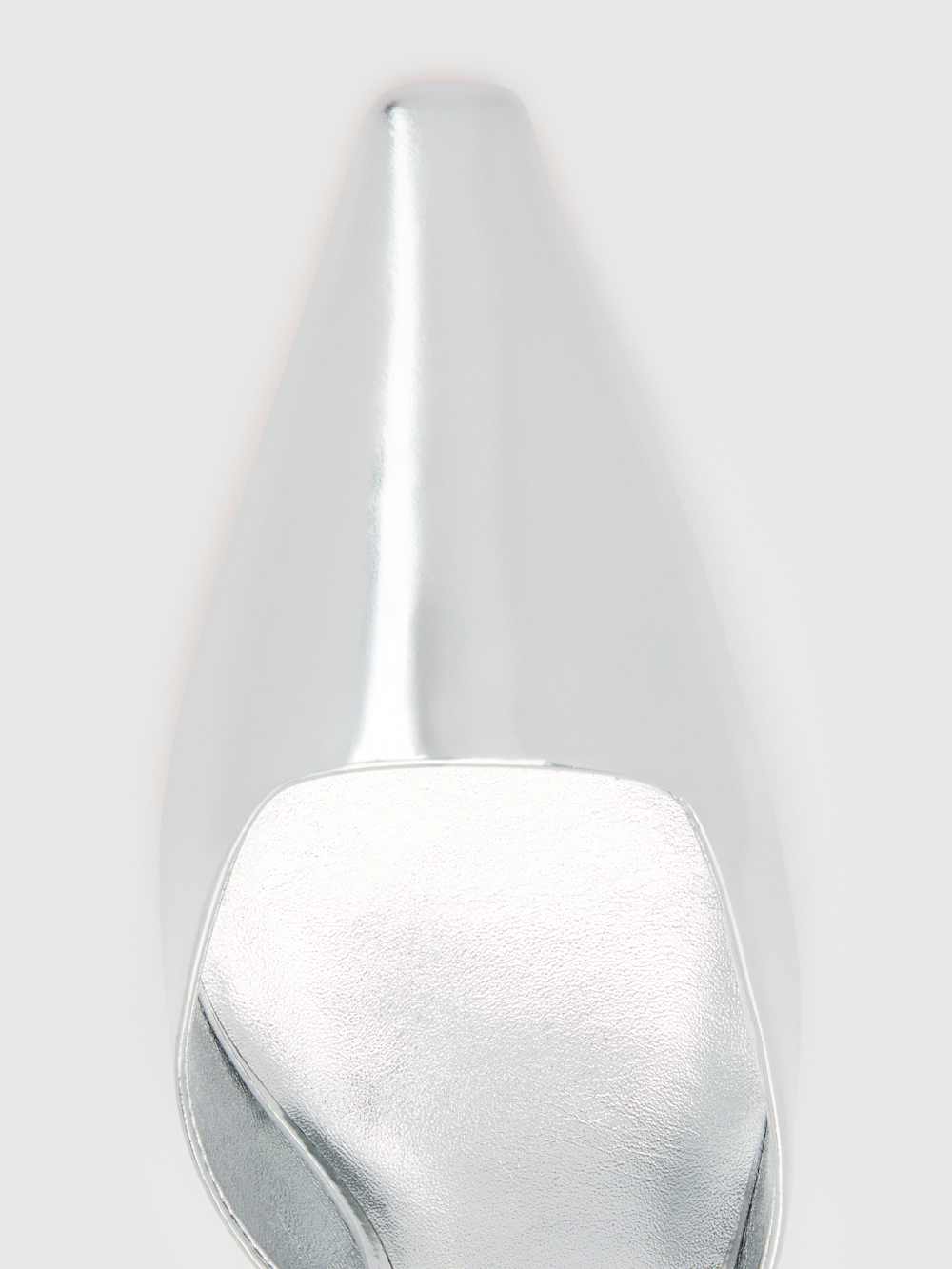 Upper is made from a mirror metallic foiled leather with a high shine reflective surface. Spot clean.