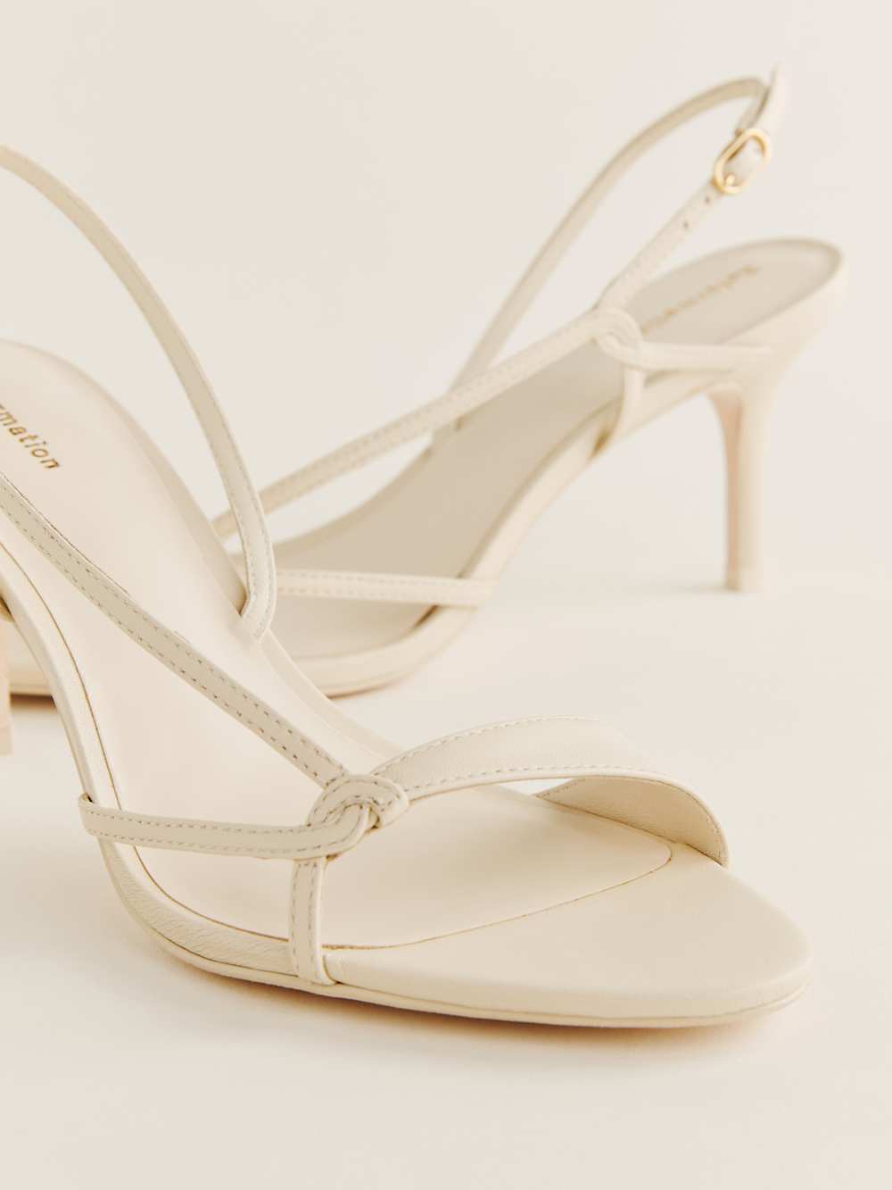 Wear me. Shop the Nino Slingback Heeled Sandal from Reformation, a heeled sandal with a slim round toe, a strappy upper, and an adjustable ankle strap.