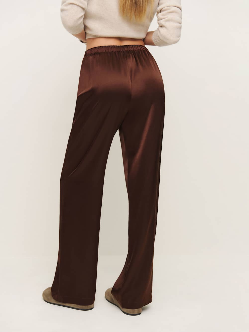 New silky. Shop the Olina Silk Pant from Reformation, a pant that is fitted in the waist with a relaxed fitting leg.