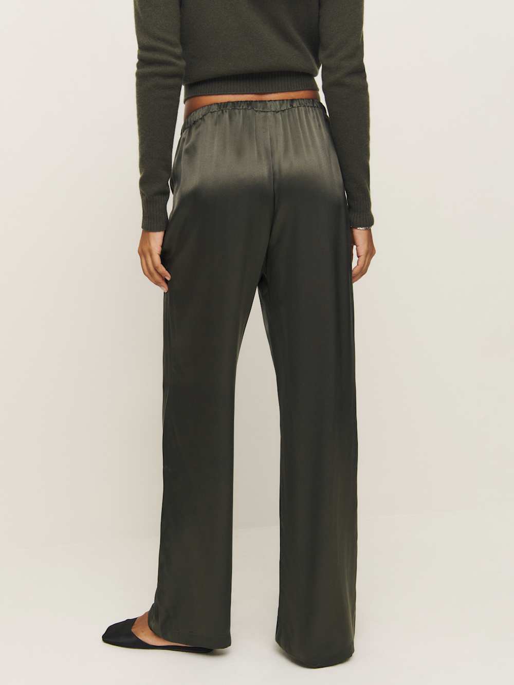 New silky. Shop the Olina Silk Pant from Reformation, a pant that is fitted in the waist with a relaxed fitting leg.