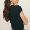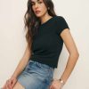 Soft and stretchy if you’re into that. Shop the Olive Knit Top from Reformation, a fitted tee with short sleeves.