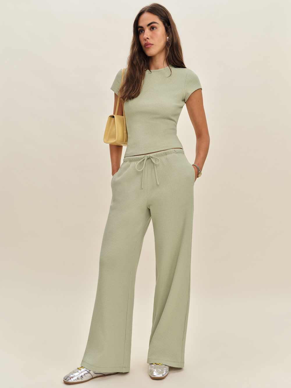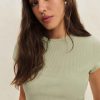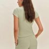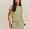 Soft and stretchy if you’re into that. Shop the Olive Knit Top from Reformation, a fitted tee with short sleeves.