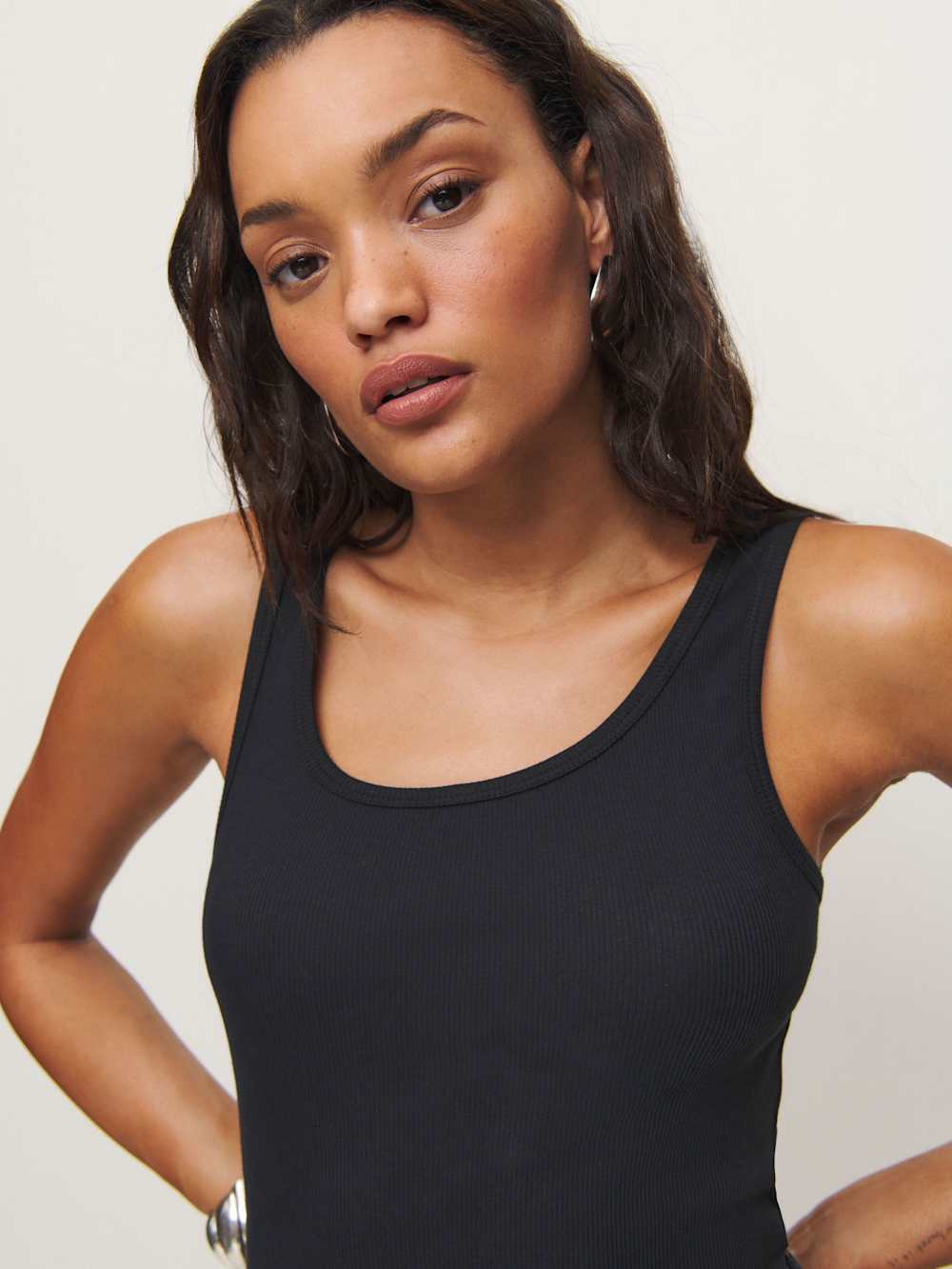 Shop the Olive Tank from Reformation, a sleeveless fitted tank with a scoop neckline.