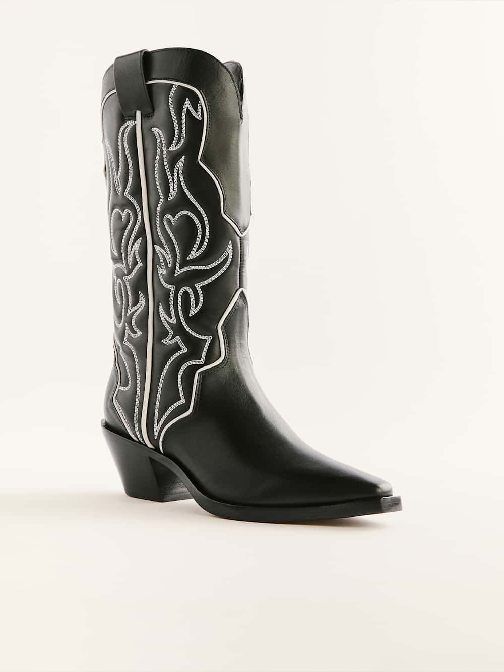 Save a horse. And a lot of water. Shop the Olive Western Boot from Reformation, is a mid-calf western boot with authentic western piping.