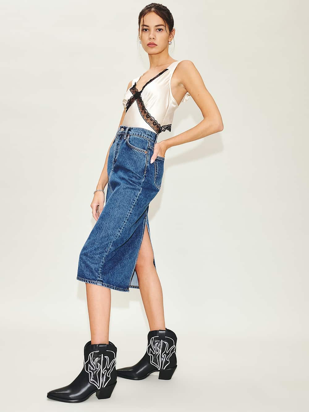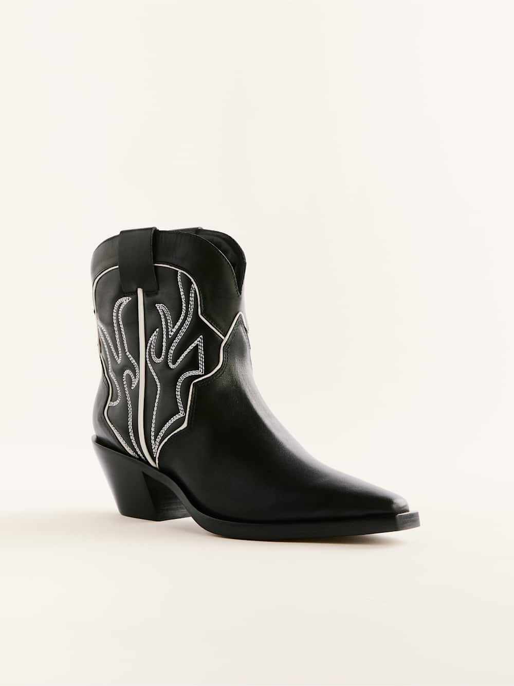 You listen to country music now. Shop the Otto Mini Western Boot from Reformation, is an ankle height western bootie with authentic western piping.