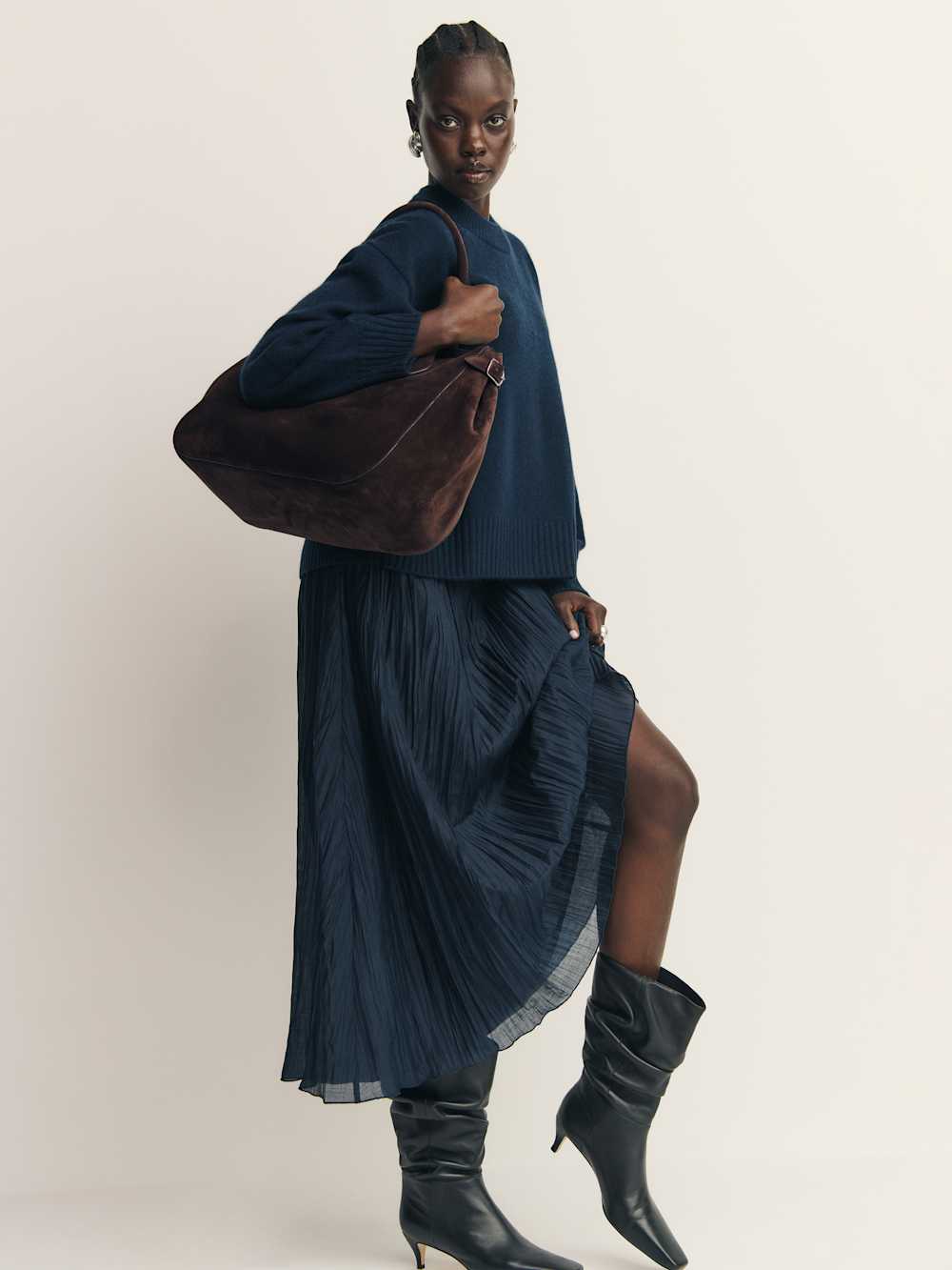 Carry me. Shop the Oversized Patrizia Bag from Reformation, is an oversized bowling bag with a magnetic closure and interior pocket with a zipper.