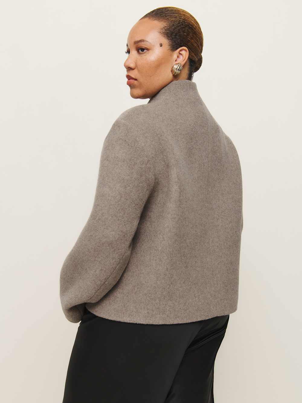 Layer up. Shop the Owen Jacket ES from Reformation, a collarless jacket with a boxy fit and button front.