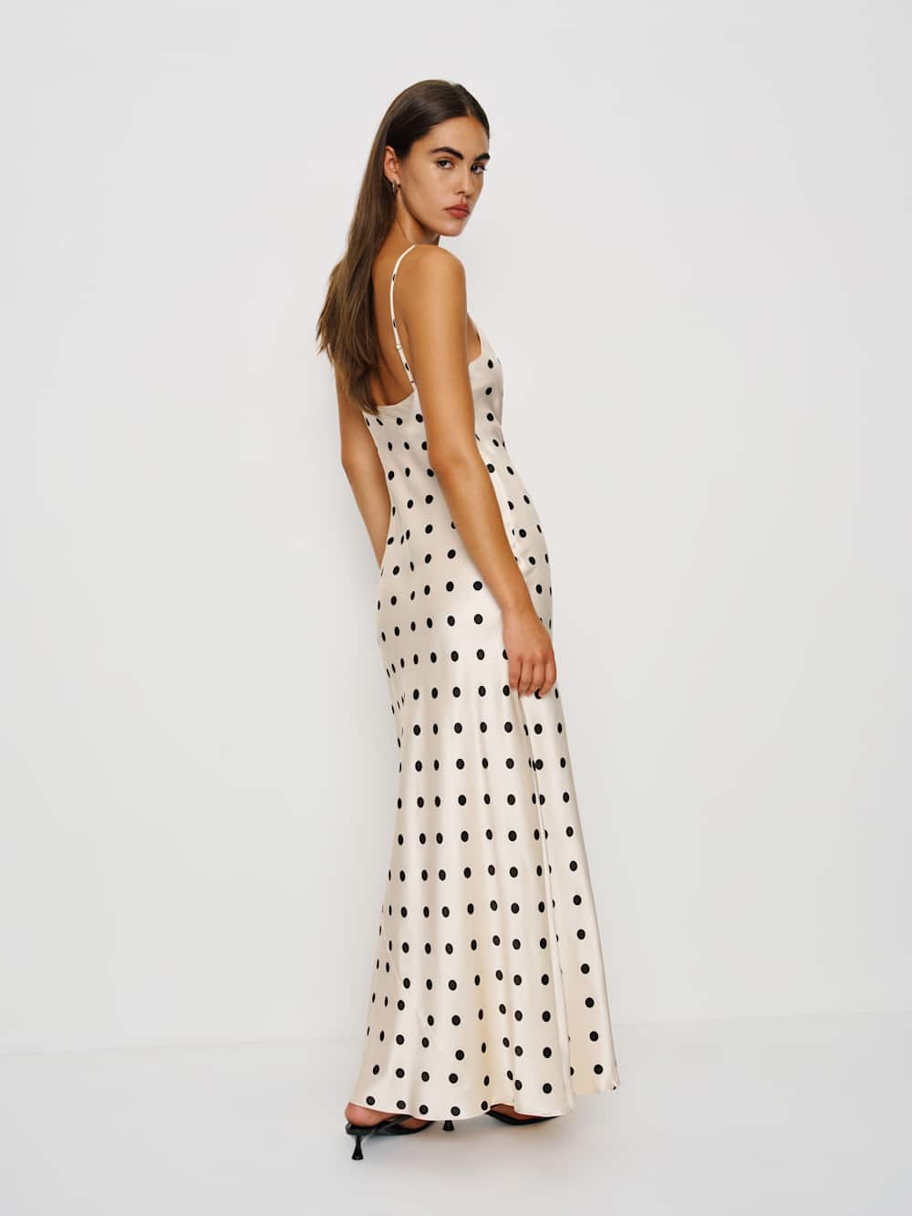 Someone’s fancy. The Parma is a long, ankle length slip dress that’s slim fitting throughout. It has adjustable straps.