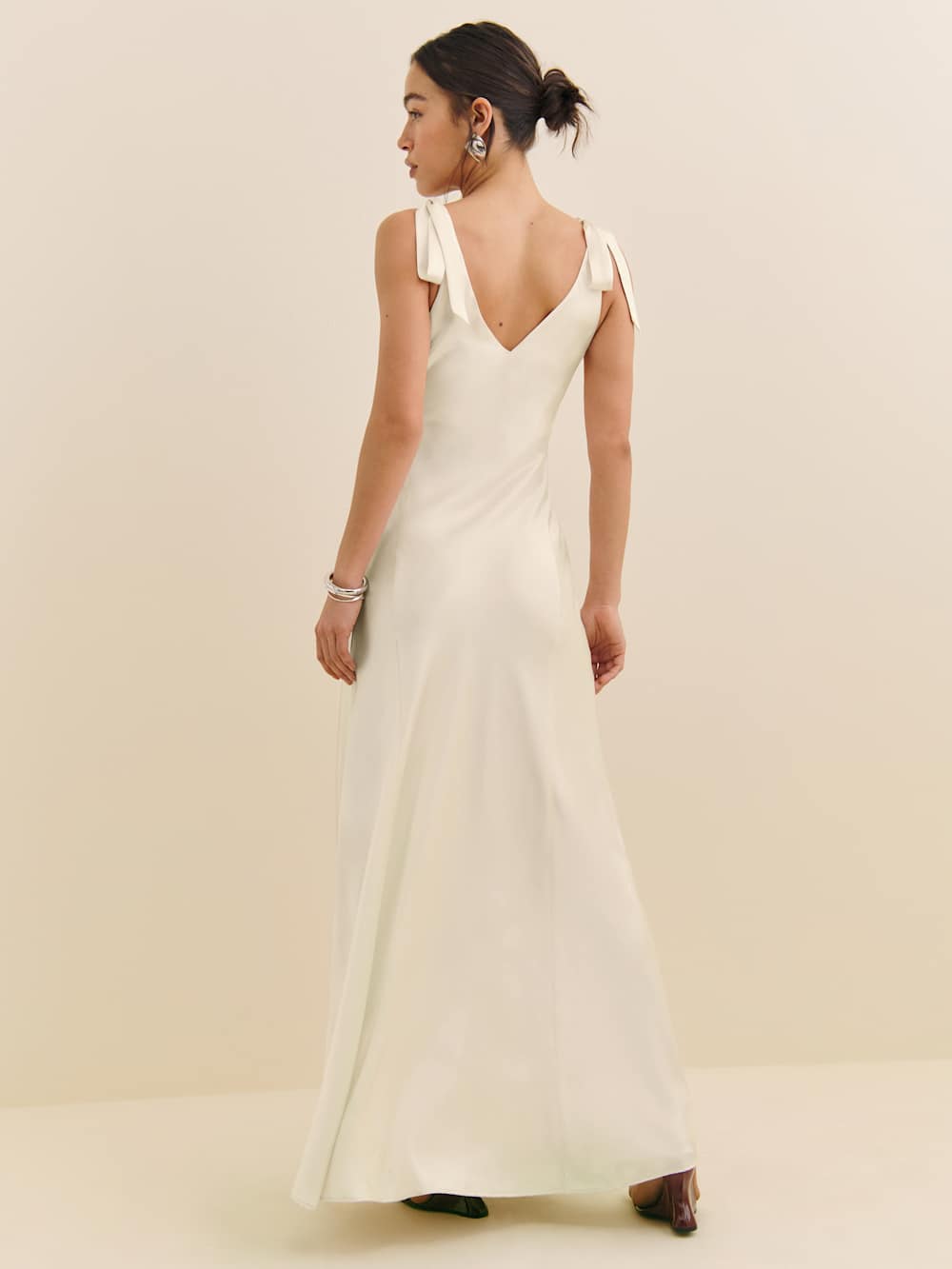 If you have to be fancy soon. Shop the Pernille Silk Dress from Reformation, a sleeveless, maxi dress with a V-neckline and adjustable shoulder ties.