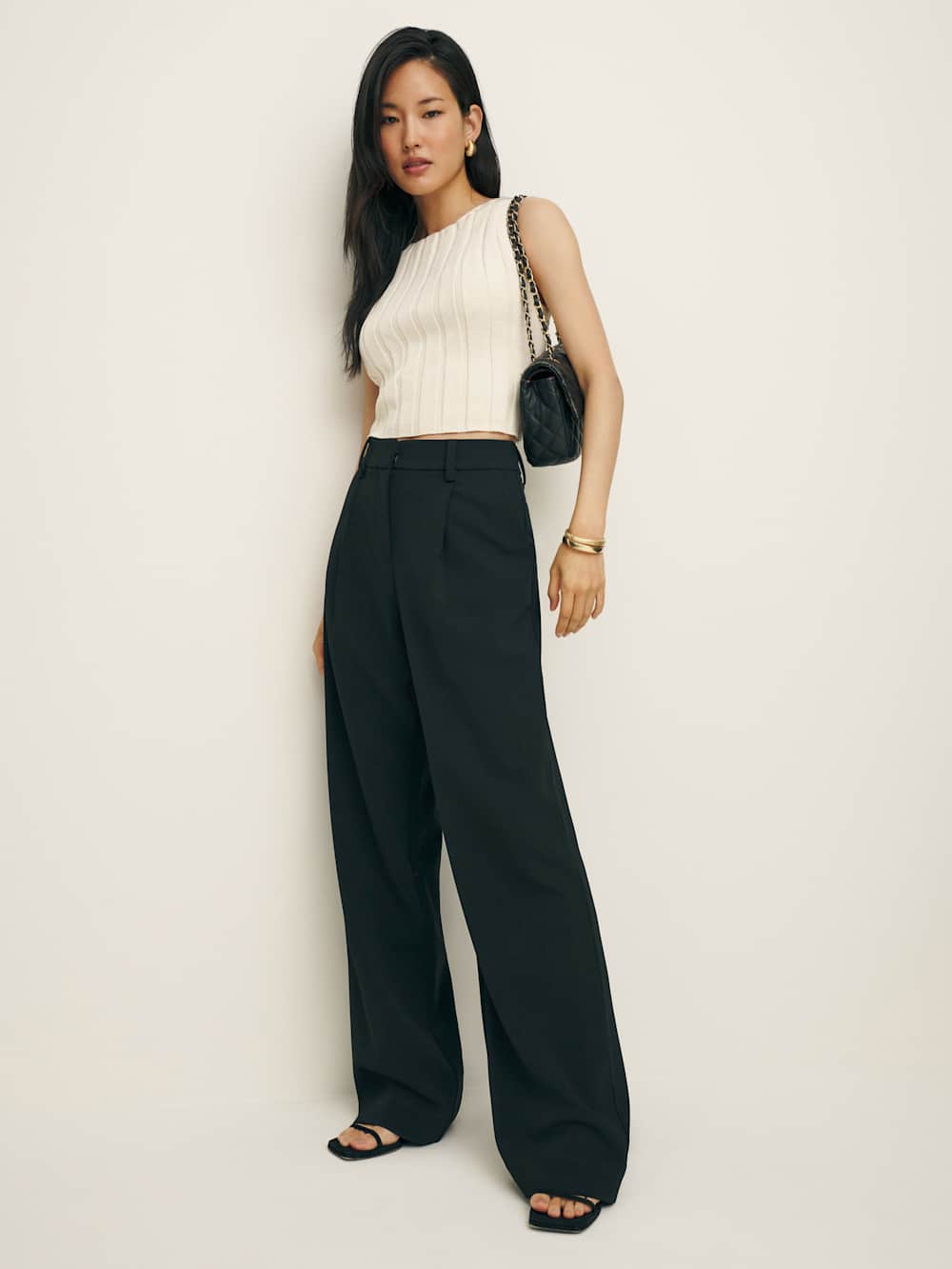 No nonsense. Shop the Petites Alex Mid Rise Pant from Reformation, is a high rise pant with pleating at the front and a relaxed leg.