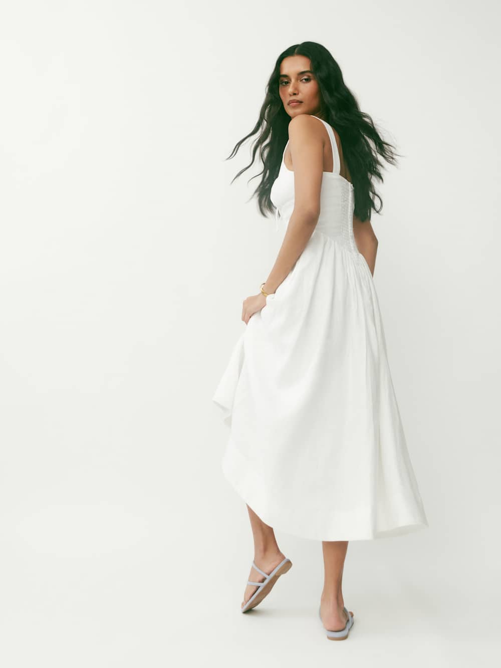 Easy breezy. Shop the Petites Balia Linen Dress from Reformation, a sleeveless maxi dress with a scoop neckline and front tie.