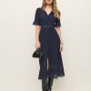 How dreamy. Shop the Petites Woodson Dress from Reformation, a short sleeve midi dress with a slim fit.