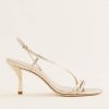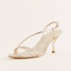 Wear me. Shop the Petunia Heeled Sandal from Reformation, a heeled sandal with asymmetrical straps at the upper and a strap at the ankle.