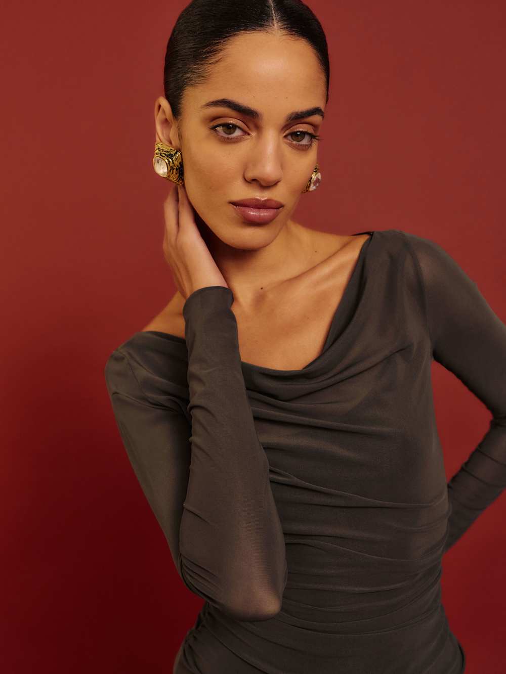 Easy little knit. Shop the Reese Knit Dress from Reformation, a long-sleeve mini dress with a cowl neckline and ruching throughout.