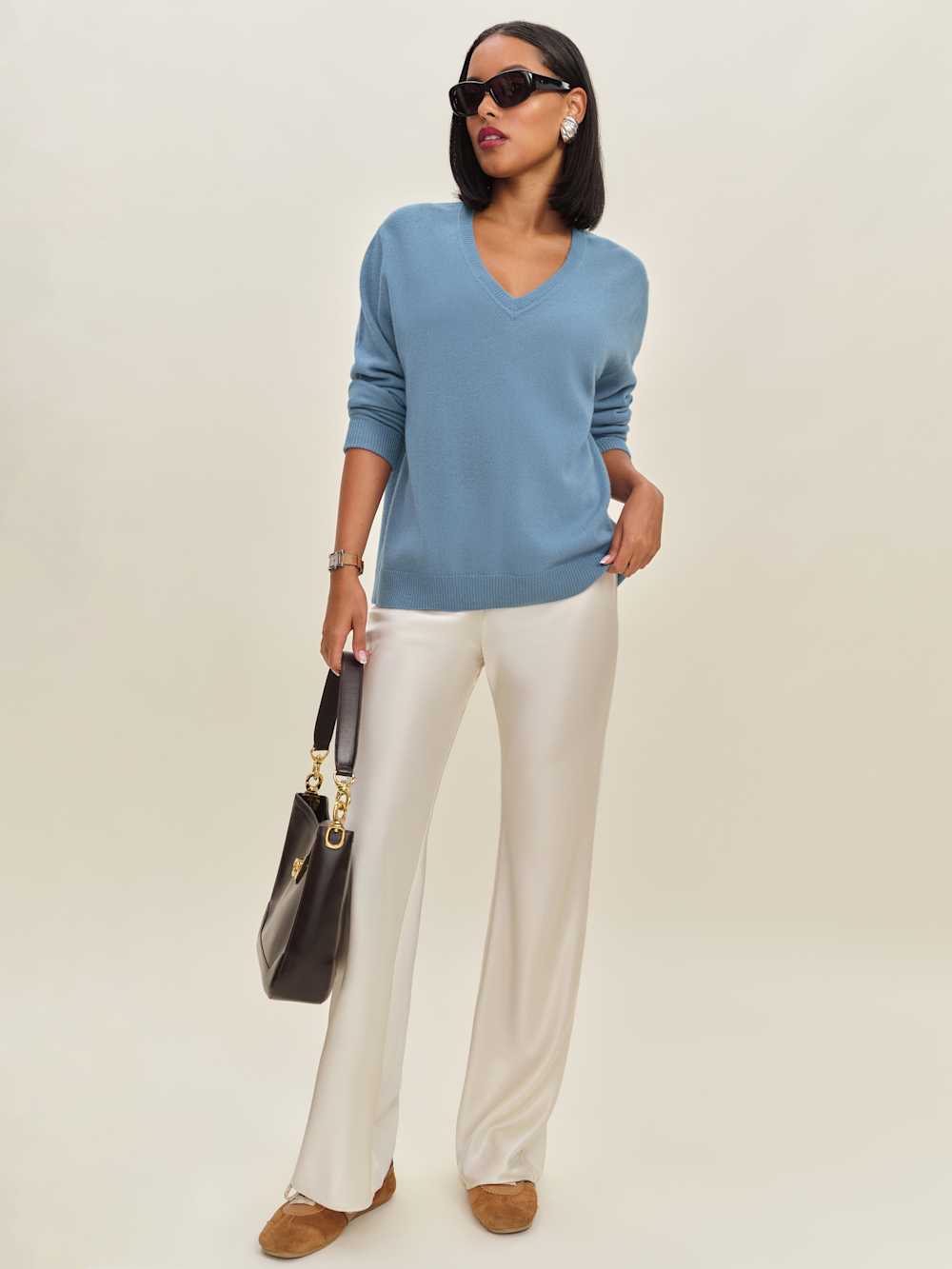 Shop the Remi Cashmere V Neck from Reformation, a relaxed fitting cashmere sweater with a v neckline.