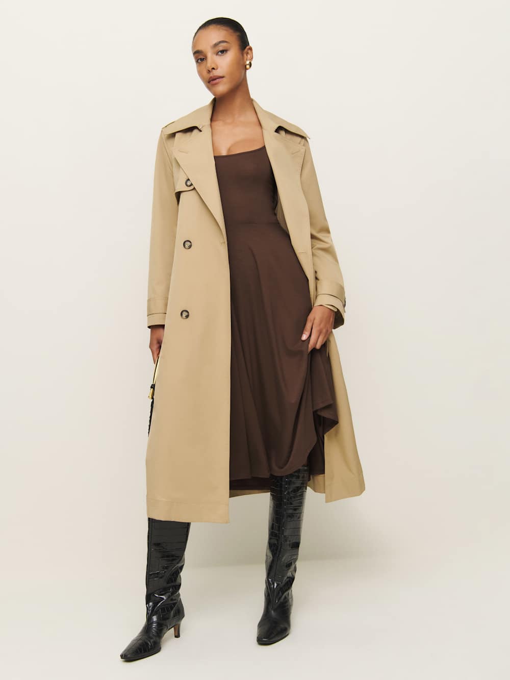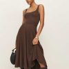 Look cute, be comfortable. Shop the classic Rou Dress from Reformation, a midi length, fit and flare dress with a scoop neckline.