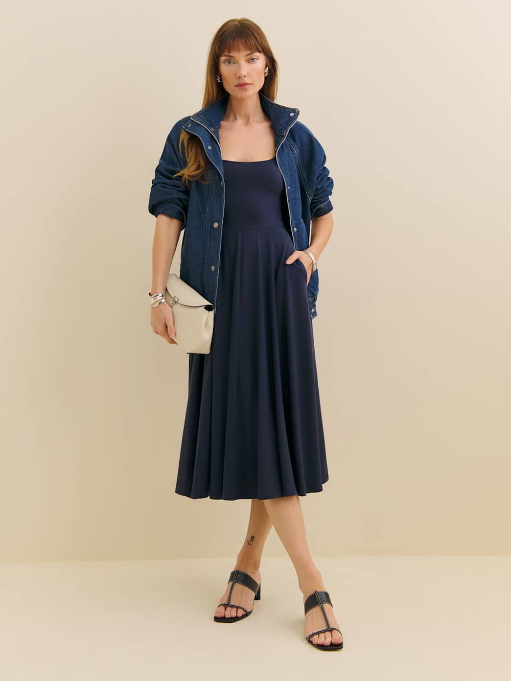 Look cute, be comfortable. Shop the classic Rou Dress from Reformation, a midi length, fit and flare dress with a scoop neckline.